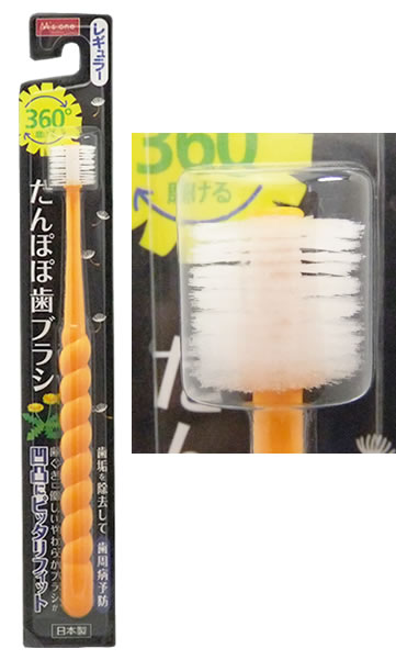 名 称Ms one エムズワン たんぽぽ歯ブラシレギュラー 360度磨ける ハブラシ内容量1本特 徴★360°磨ける◆歯垢を除去して歯周病予防◆歯ぐきに優しいやわらかブラシが凹凸にピッタリフィット◆爽快なみがきごこちで、歯垢除去力が高いモデルです。